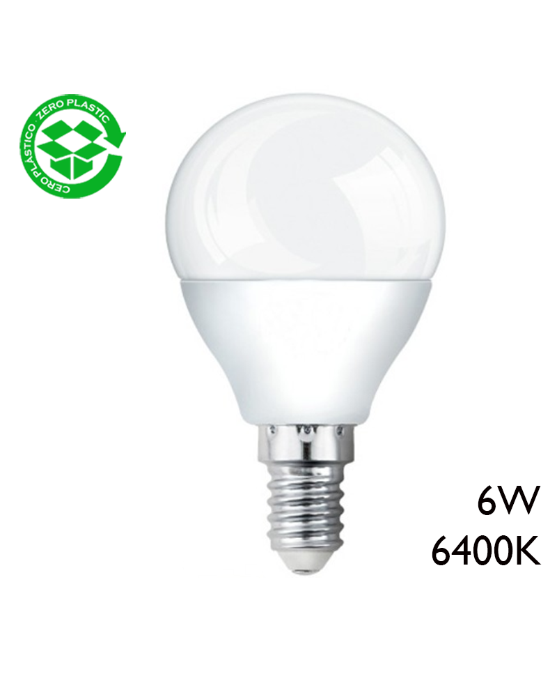 Lámpara LED tipo esférica de 6W rosca E14 luz blanca día 6400K