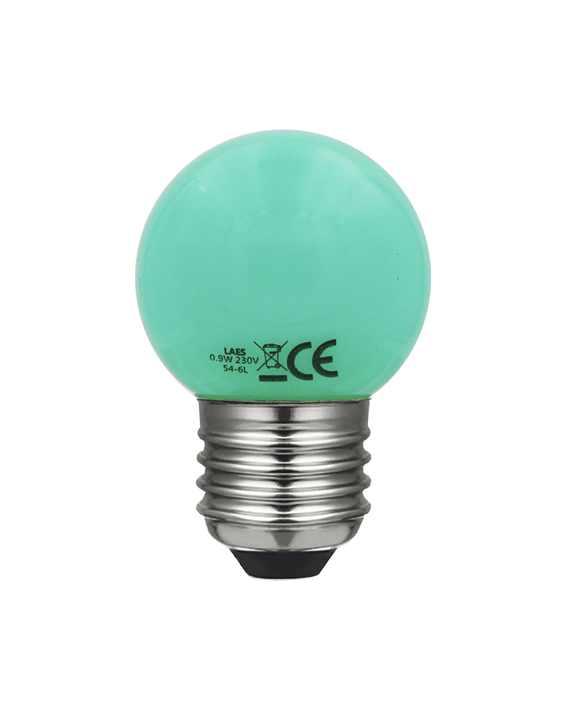 Bombilla Esférica 45 mm. Color Verde LED E27 0,9W