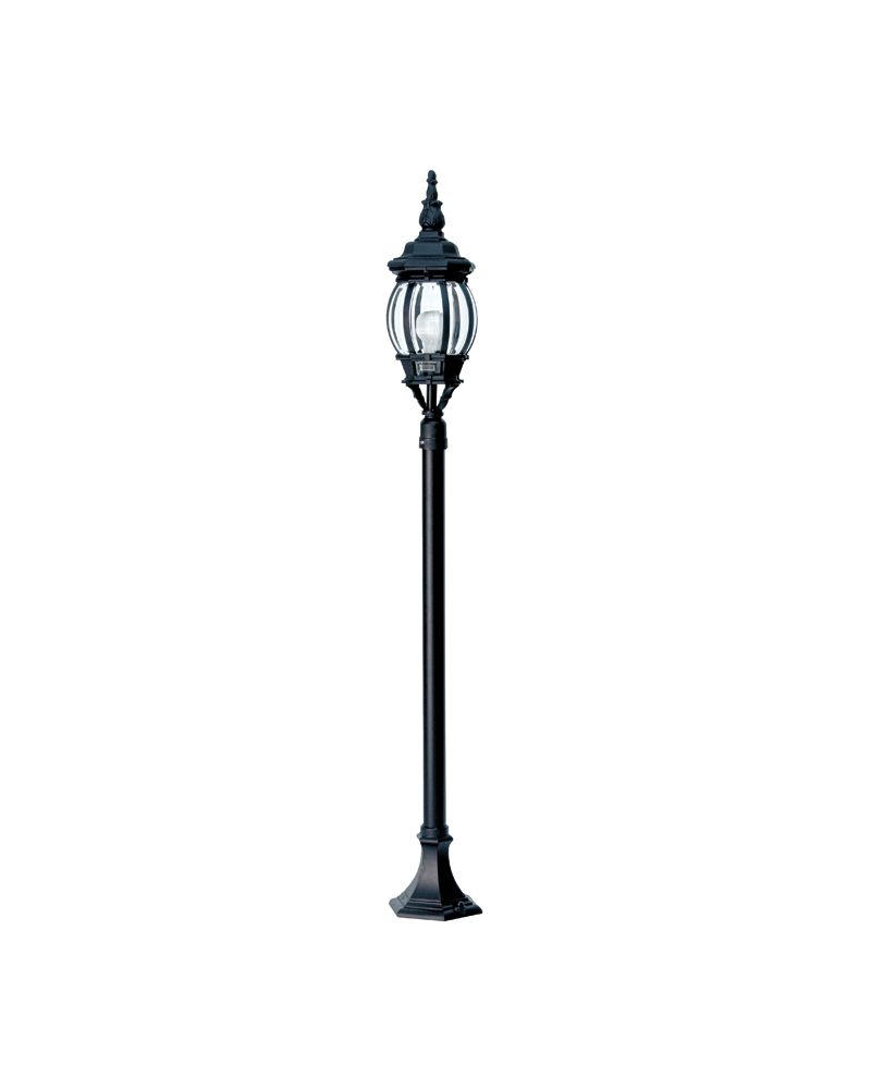 Farola IP44 para lámpara de rosca E27 alto 137cms, Ø 17,5cms, con difusor de policarbonato biselado UV resistente. Disponible en color negro, verde oscuro y marrón óxido.