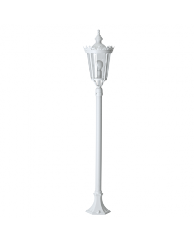 Farola estilo clásico IP44 para bombilla de rosca E27 alto 137cms, Ø 21cms, material resistente a corrosión y UV.  Disponible en Negro, Marrón óxido y Blanco.