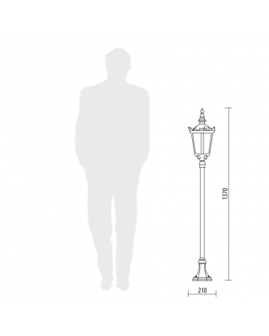 Elegante farola de estilo clásico IP44 para lámpara de rosca E27 alto 137cms, Ø 21cms. - Para bombilla de rosca E27, no incluida: elige la bombilla y el color de luz que prefieras. - Material compuesto "Duralighting." Tubo de acero, cubierta de material compuesto. - Difusores de policarbonato UV resistente. - Lámpara: para bombilla LED o de ahorro energía de rosca E27, máximo 15W. - Material resistente a corrosión y rayos UV. - Resiste a todo tipo de climatologías - Bajo coste de mantenimiento - Tornillos de acero inoxidable - Fabricado en ITALIA.