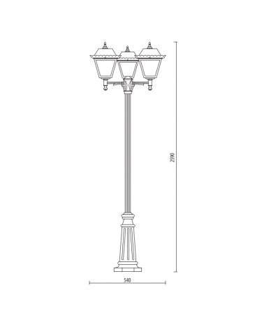 Farola IP44 para 3XE27 259x54cms, material resistente a corrosión y UV