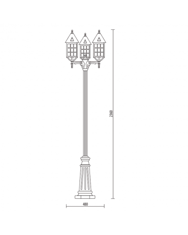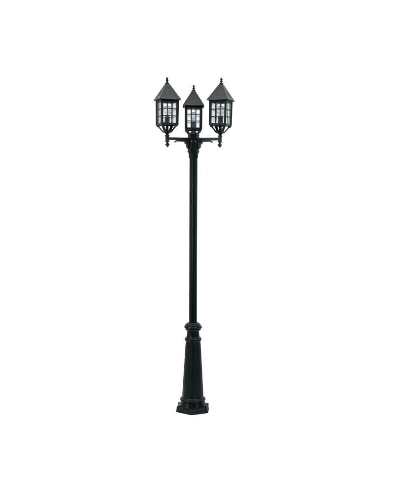 Farola de 3 luces IP44 para 3 bombillas E27 alto 236cms, Ø 48cms, material resistente a corrosión y UV