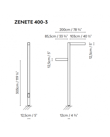 Farola LED con una altura de 303cm IP65. Fabricada en metal galvanizado con acabado en gris mate y dos de sus caras por láminas de madera ipe ( madera originaria de Sur América y tiene un color oliva marrón oscuro que puede oscurecerse más. Muy demandada para la fabricación de tarima exterior dada su enorme resistencia y su durabilidad en ambientes húmedos y frente a insectos. También presenta un buen comportamiento frente al fuego dada su gran densidad) o acabado en corten sin madera. 2 Led de 23,6W, dos brazos que se pueden colocar a la misma o diferente altura. IP65. Temperatura lumínica en 3000K. Junto al bulto de la farola tiene que llegar otro con el conjunto de accesorios de perno.