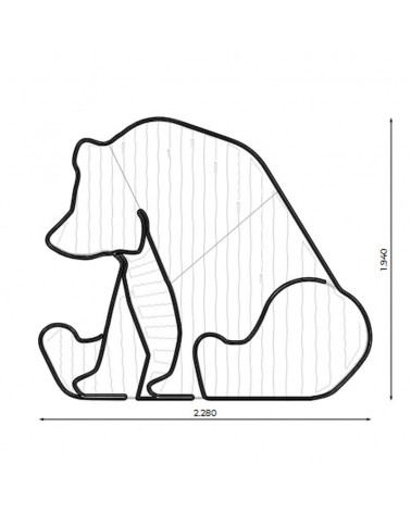 Figura luminosa navideña con forma de oso sentado ideal para parques, rotondas, jardines y bosques. Apto para uso exterior. Cable de alimentación incluido. Voltaje 24V para garantizar seguridad. Estructura dorada. Motivo 2D que se sirve con contrapeso de 30kg para colocar simulando un 3D.