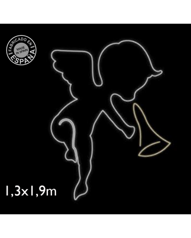 Figura luminosa navideña realizada con tubo luminoso en forma de Rey Mago Gaspar, iluminada en luz blanca cálida, amarillo y rojo. Tamaño: 95x217 cms. Apto para uso exterior. Fabricado en España.