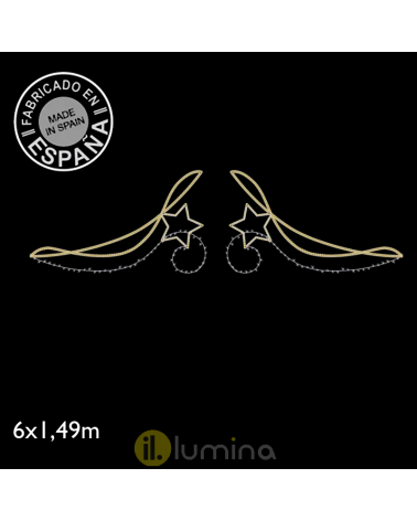 Ideal para fachadas, decorar calles, plazas, grandes edificios, centros comerciales, etc. - Cable de alimentación incluído. - Medidas figura luminosa: largo 480 cms, altura 220 cms. Peso: 32 Kgs. - Tipo bombilla: tecnología LED. - Consumo total: sólo 270W. - IP65: Apto para uso exterior. - Tensión: directo a red 230V.
