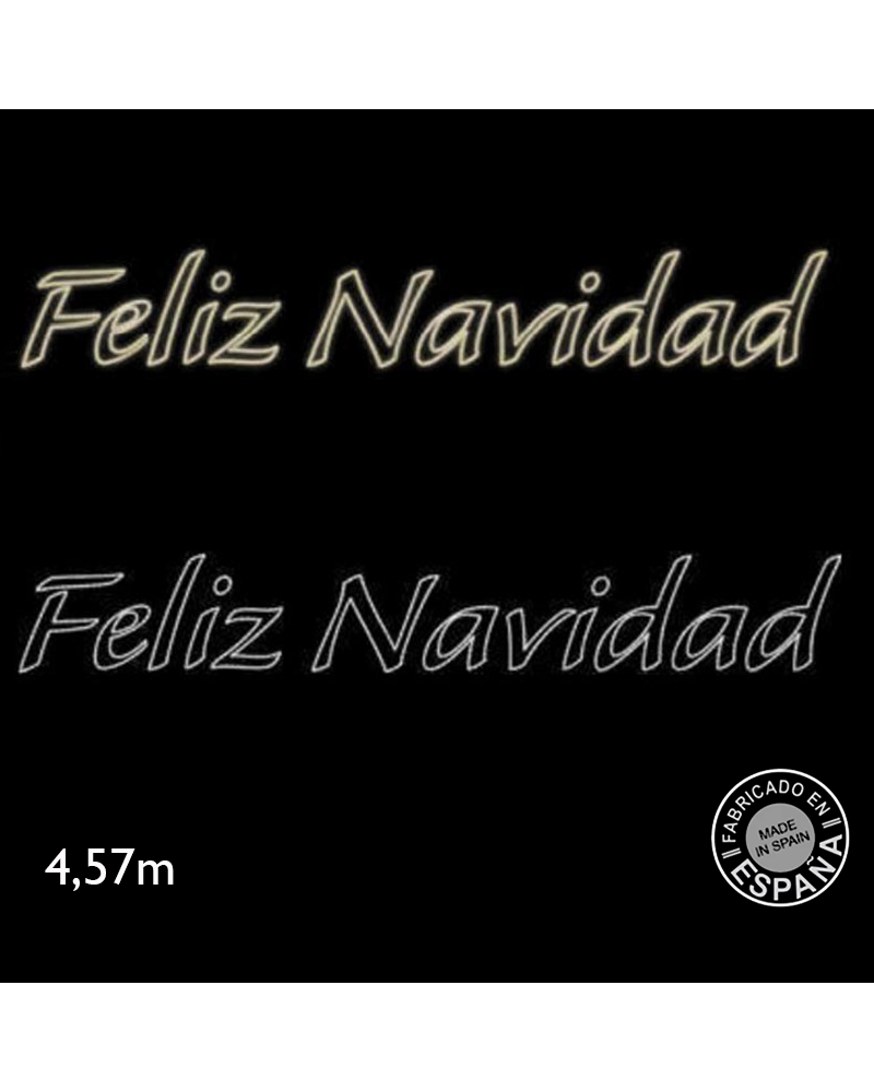 Cartel de leds de FELIZ NAVIDAD de 4,57 metros de largo iluminada con leds disponible en color cálido o blanco frío. Al ser tecnología LED solo consume 78W. Apto para uso exterior, IP65 & IP44 Plug. Fabricado en España.