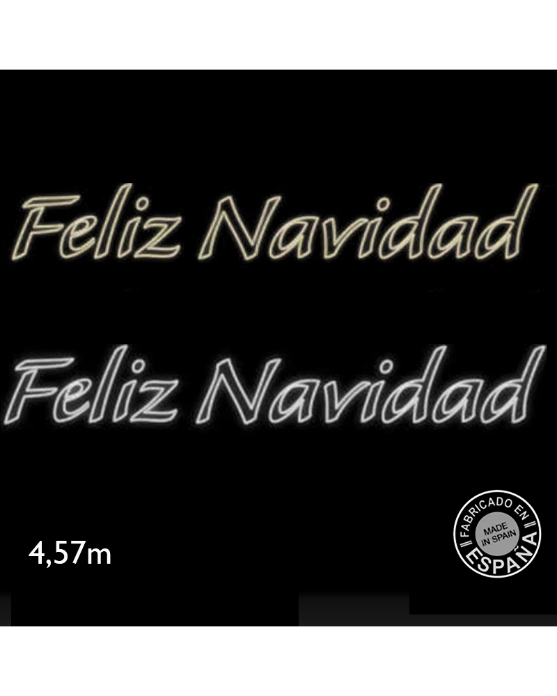 Cartel de leds de FELIZ NAVIDAD de doble Neón de 4,57 metros de largo iluminada con leds disponible en color cálido o blanco frío. Al ser tecnología LED solo consume 234W. Apto para uso exterior, IP65 & IP44 Plug. Fabricado en España.