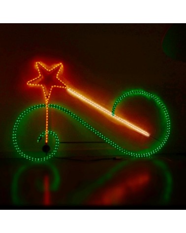 Ideal para fachadas, decorar calles, farolas, balcones, adornar finales de guirnaldas, etc. - Cable de alimentación incluido. - Medidas figura luminosa: largo 826 cms, altura 160 cms. Peso: 48 Kgs. - Tipo bombilla: tecnología LED. - Consumo total: sólo 264W. - IP65: Apto para uso exterior. - Tensión: directo a red 230V.