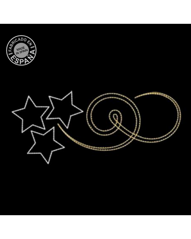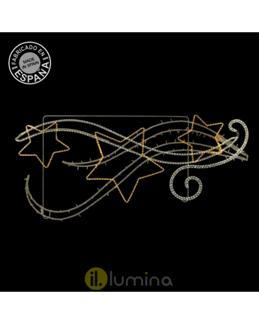 . Ideal para fachadas, decorar calles, farolas, balcones, adornar finales de guirnaldas, etc. - Cable de alimentación incluido. - Medidas figura luminosa: largo 220 cms, altura 57 cms. Medidas estructura: largo 257 cms, alto 60 cms. Peso: 7 Kgs. - Tipo bombilla: tecnología LED. - Consumo total: sólo 62W. - IP65: Apto para uso exterior. - Tensión: directo a red 230V.