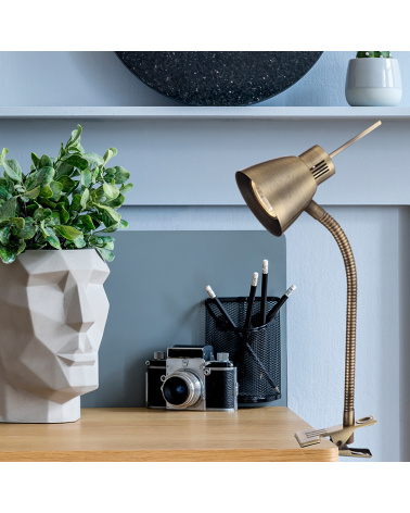 Flexo con pinza de 37,5 cm color latón con brazo flexible que le da la flexibidad que necesita LED GU10 luz cálida 3000K 250 lm. Interruptor en el cable.