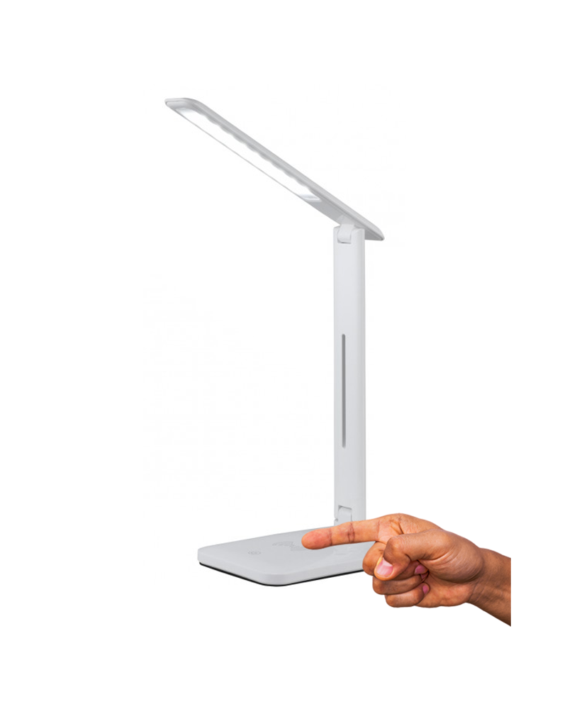 Flexo LED con estación de carga inalámbrica, diseño moderno y practico. Su funcionalidad le permite ocupar el mínimo espacio con gran luminosidad y con cabezal orientable. Apto para cualquier espacio dedicado a la lectura y/o estudio. Dispone de puerto USB y encendido táctil. Regulable en temperatura de luz.