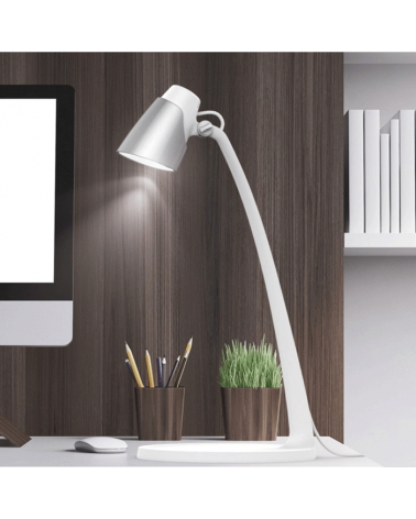 Flexo sobremesa 40cm en acrílico acabado blanco y Plata led 6W 4000K 600Lm