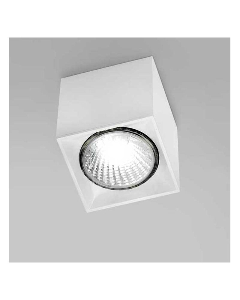 Foco fijo forma cúbica disponible en Negro, Blanco RAL 9016 y Aluminio satinado con casquillo GU10 puede usarse con todo tipo de bombillas dicroicas. Tapa decorativa protectora de la lámpara, en Policarbonato inyectado. Cuerpo fabricado en Aluminio extrusionado. Geometría y estilo para cualquier ambiente.Fabricado en España.