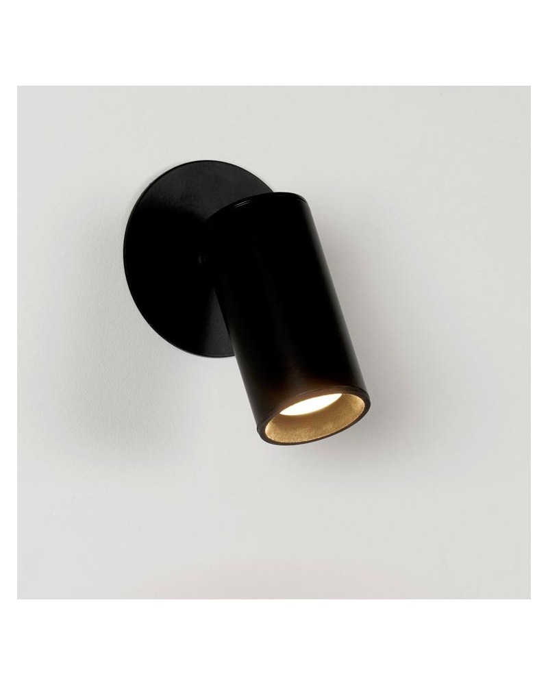 Aplique/Foco para pared, techo o mueble (cabecero de cama) oscilante de 4cm de diámetro de altura con cuerpo de Acero de alta calidad con Led incorporado regulable en tres pasos MacAdam. Ofrece una iluminación de diseño, elegancia y efectividad, su base es de Aluminio inyectado. Existen dos acabados, en Blanco y Negro mate. Fabricado en España.