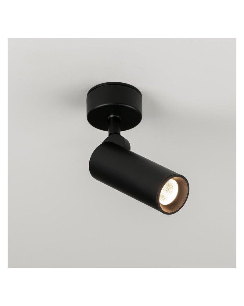 Aplique/Foco oscilante de 5,5cm de diámetro con cuerpo de Acero de alta calidad con Led incorporado de 7W regulable en tres pasos MacAdam. Ofrece una iluminación de diseño, elegancia y efectividad, su base es de Aluminio inyectado y zamak. Existen dos acabados en Blanco y Negro mate con aro decorativo. Fabricado en España.