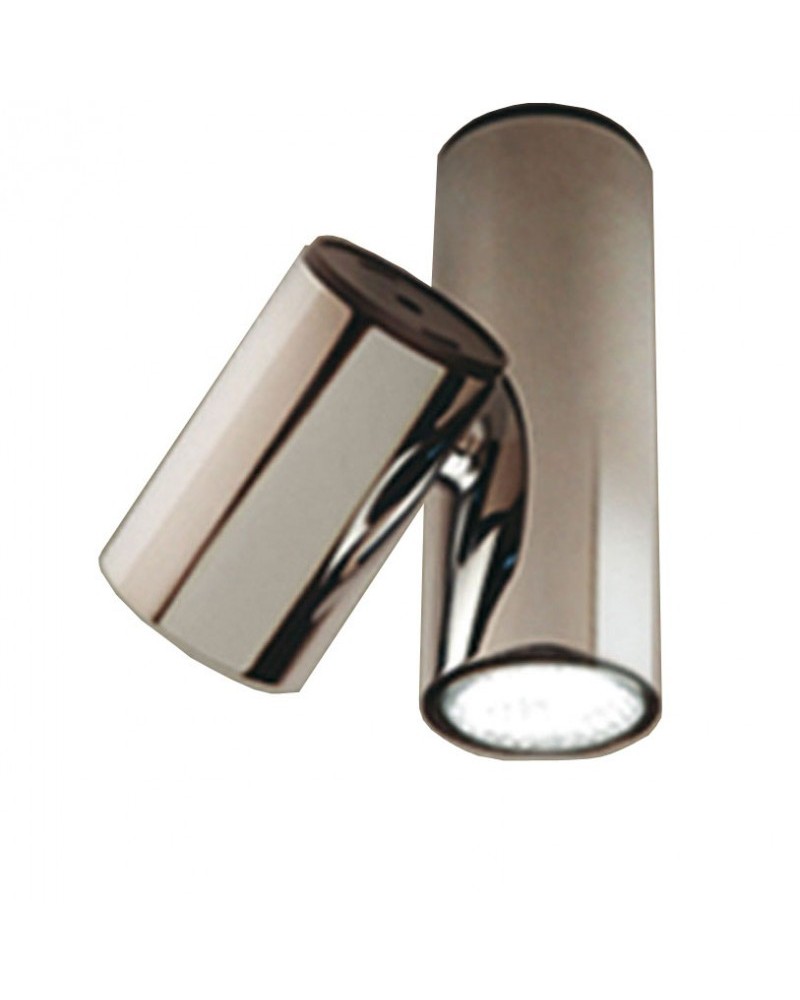 Foco doble en forma de cilindro, disponible en cromo, Negro, Blanco con casquillo GU10 con cuerpo de zamak y Aluminio de alta calidad. Versatilidad de alta calidad para cualquier ambiente. Un foco es fijo y el otro oscilante.Fabricado en España.