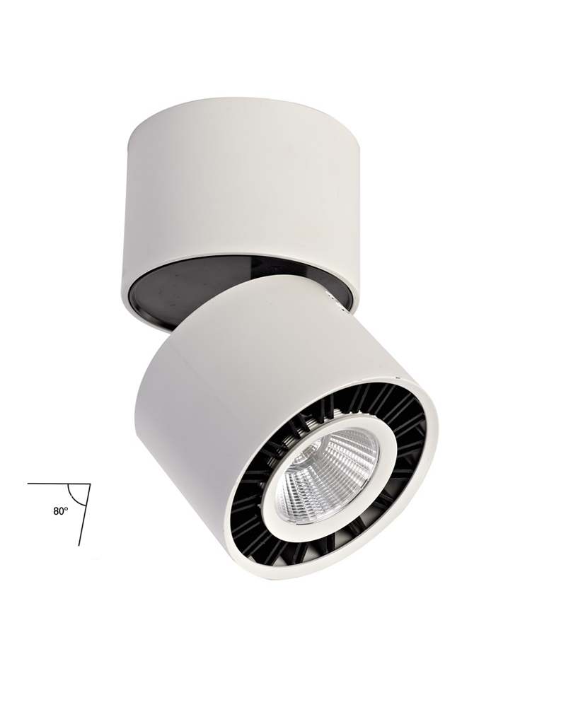 Foco de techo cilindrico acabado blanco LED 12W aluminio basculante 80º