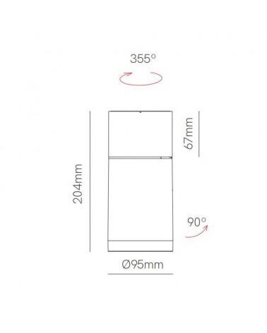 Foco orientable para techo cilindrico de 9,5cm, con LED de 30W de potencia diseñado para uso interior. Fabricado en aluminio, disponible en acabado blanco o negro. Orientable a 355º con un ángulo de basculación de 90º, permitiendo enfocar y proyectar la luz hacía donde se prefiera. Puede ser colocado a pared o directamente a techo.