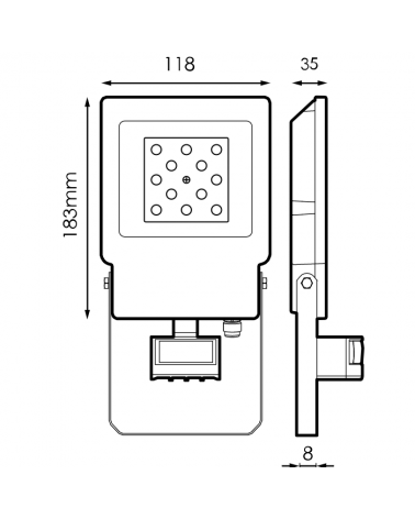Foco para exteriores disponible en 10W, 20W y 40w con sensor de presencia y luminosidad 5000K con sensor de presencia 5000K IP65. Alta luminosidad y reducidas dimensiones.