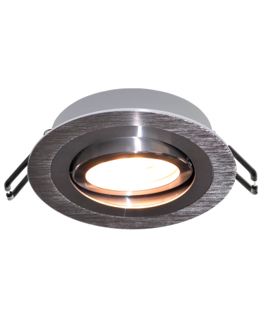 Aplique de 80x84mm. de DISEÑO minimalista, con portalámparas para GU10, fabricado en Aluminio natural cepillado y acabado en negro y blanco. Bascula 45ª y permite el giro 360º. Bombilla no incluida.