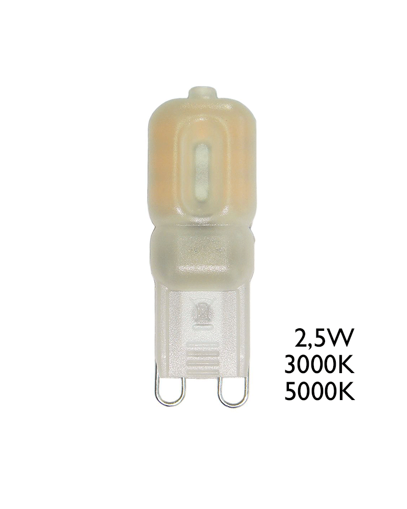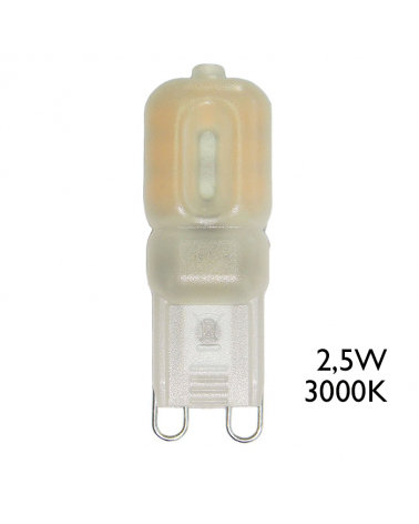 Bombilla LED G9 de 2,5W, directa a red 230V. Disponible en luz blanca cálida 3000ºK o luz blanca día 5000ºK, con una luminosidad de 200Lm. Ahorra en tu factura de la luz hasta un 80%.