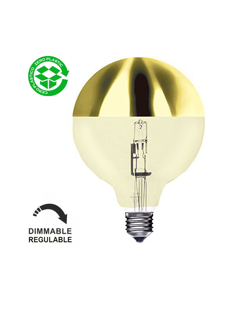 Bombilla Globo 125mm. Cúpula Espejo dorado halógena ECO 42W E27
