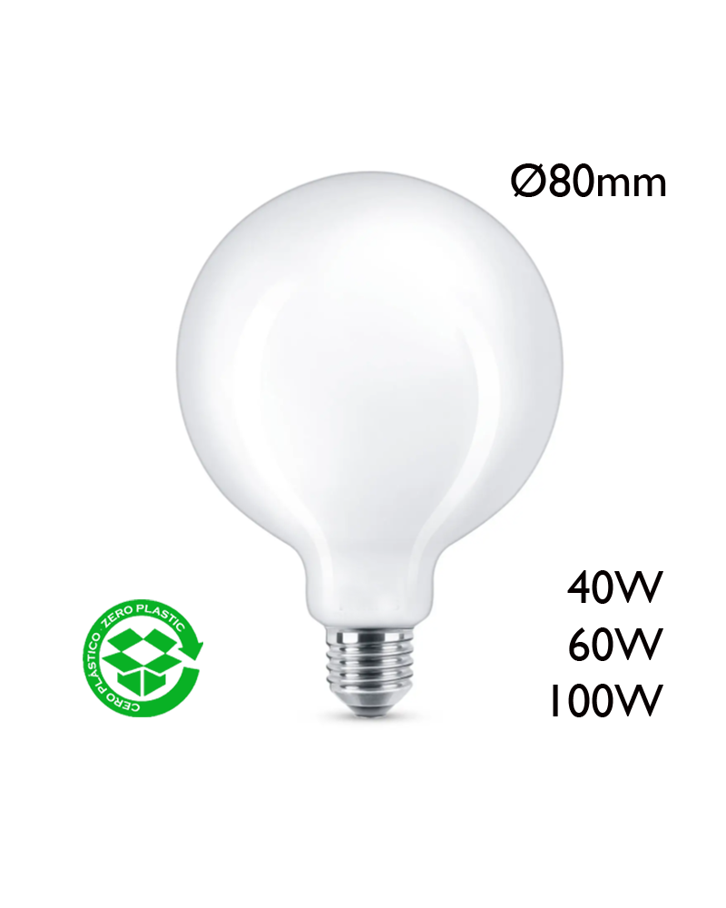 Bombilla Globo 80mm incandescente opal E27 230V