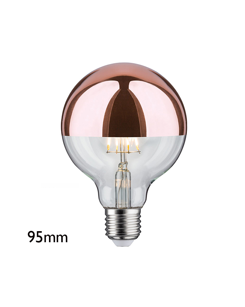 Bombilla Globo 95 mm. Cúpula Espejo Cobre filamentos LED E27 7,5W 2700K 680Lm.