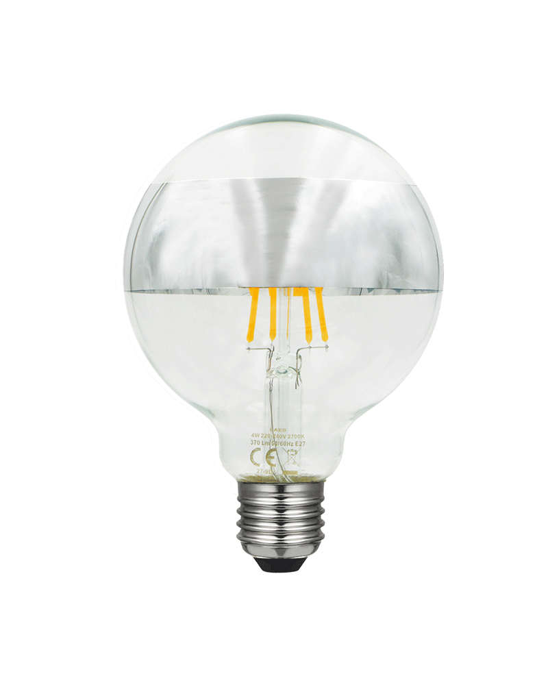 Bombilla Globo 95 mm. Espejo Anillo filamentos LED Regulable E27 4W 2700K 370Lm.