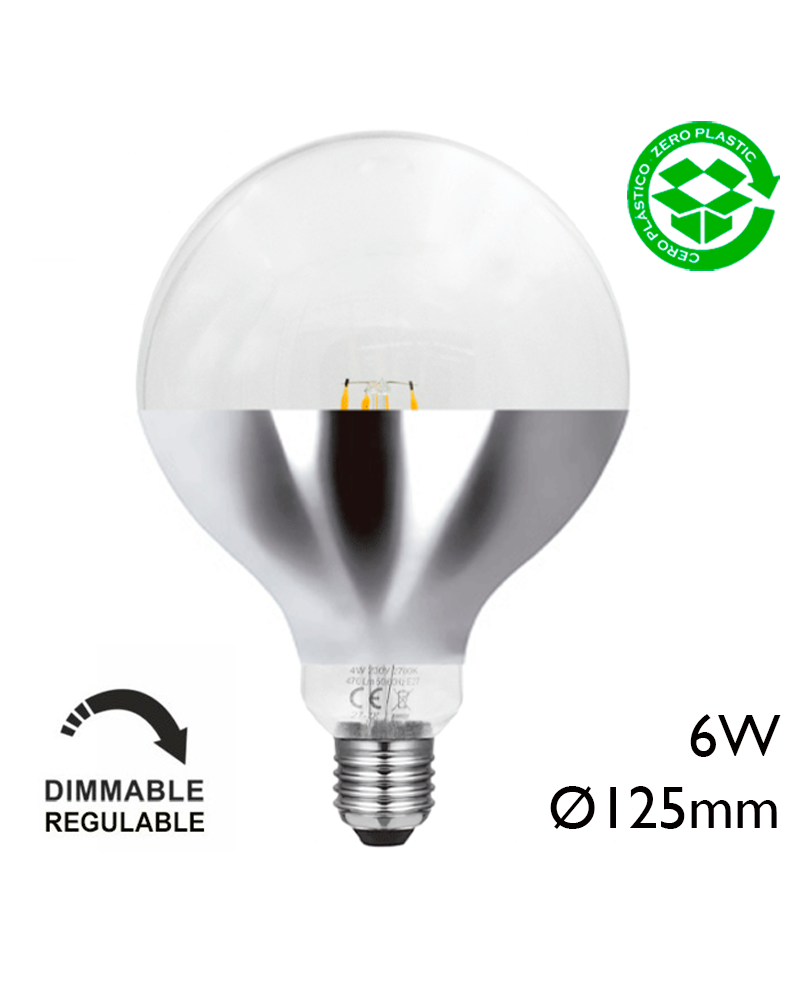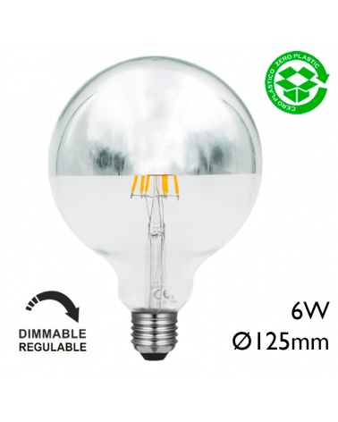 Bombilla Globo Espejo Reflector 125 mm. filamentos LED Regulable E27 6W 2700K 510Lm.