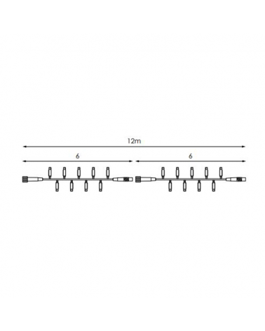 Cada guirnalda está compuesta por 2 segmentos de 6 metros, y además son empalmables, por lo que puede hacer la combinación que crea necesaria. - Medidas: longitud de 12 metros - Lamparas: compuesta por 100 luces LED - Consumo total: sólo 8W - Consumo por segmento 6m.: 4W - Empalmable: se puede acoplar hasta un máximo de 10 cadenas, formando un total de 100 metros con un solo enchufe. - Para interiores.