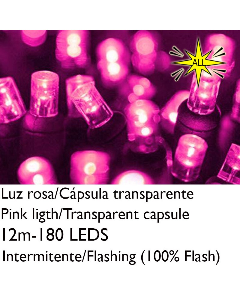Guirnalda 12m y 180 LEDs Intermitente luz rosa cápsula clara cable rosa empalmable IP65 apta para exterior