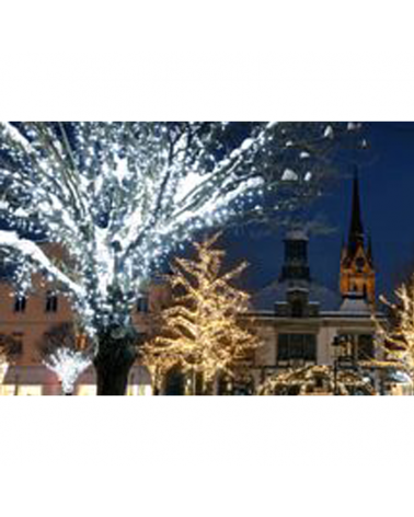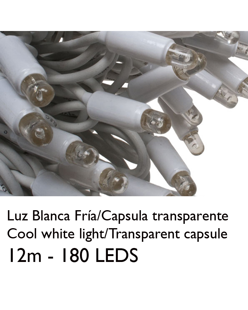 Guirnalda 12m y 180 LEDs blanco frío cápsula clara cable blanco o verde, empalmable IP65 apta para exterior