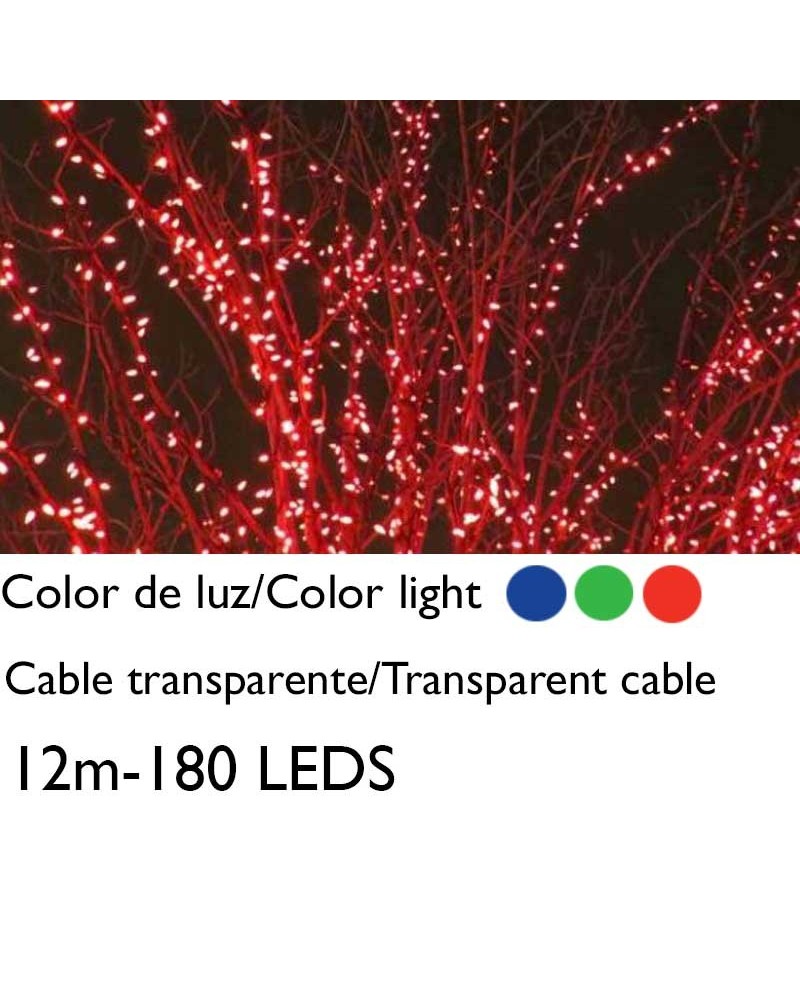 Guirnalda 12m y 180 LEDs cable transparente empalmable para interior