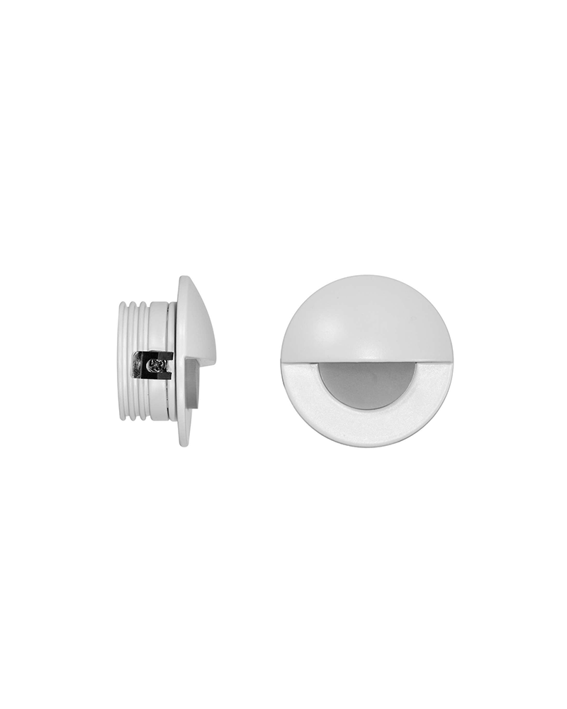 Señalizador redondo blanco 5cm Aluminio de interior con semicírculo LED 2W 3000K 60 Lm.