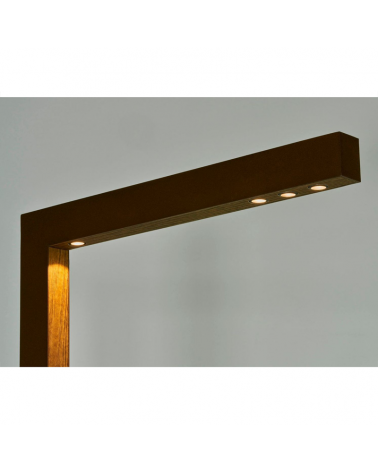 Diseñada por los arquitectos Rafael Soler Márquez y Francisco Martínez Manso, sus trabajos han sido galardonados con prestigiosos premios y menciones de arquitectura, tanto a nivel nacional como internacional. Fabricado como farola o como aplique de pared exterior. Fabricada en aluminio y madera. Acabado en corten. Con proteccion IP65.