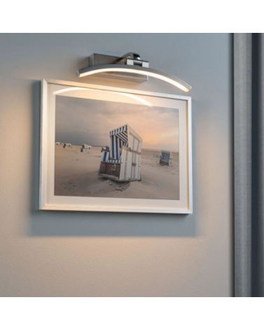 Iluminación de cuadros 30 cm LED 6W LED 3000K con un ángulo de 120º. Fabricado en metal y disponible en acabado aluminio cepillado o latón. Se monta directamente sobre la imagen y se ajusta mediante una articulación para una perfecta iluminación. Ideal para iluminación uniforme de cuadros y obras de arte, mediante una luz blanca cálida para un ambiente agradable.