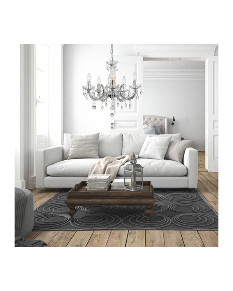 Esta magnífica lámpara de araña colgante de la serie es una auténtica joya. Ideal para espacios donde se busca elegancia, glamour y lujo. Brilla por sus detalles en cromado y transparente.