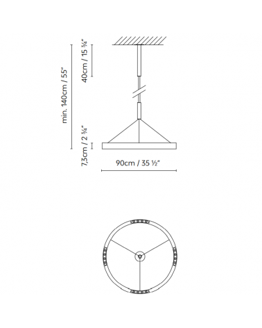 Preciosa lámpara de techo de diseño con módulos de proyectores LED que aportan luz directa y unirforme, con forma de anillo de aluminio de 90 cm, con cable de suspensión central. Regulación de intensidad de luz. Es perfecta para iluminar espacios actuales y minimalistas, estéticamente muy original.