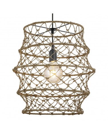 Lámpara de techo rústica 40cm pantalla red de cuerda 60W E27