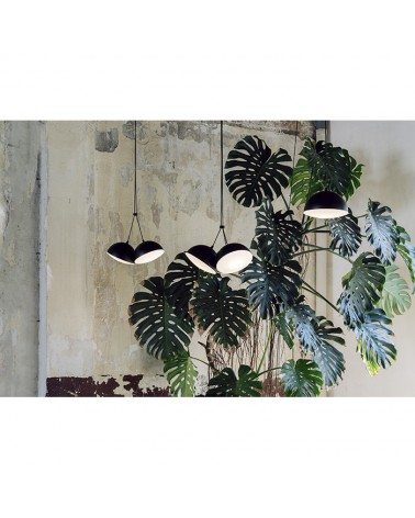 Lámpara de diseño de techo doble en acero orientable negra pantalla difusora en vidrio 50cm 2xE27