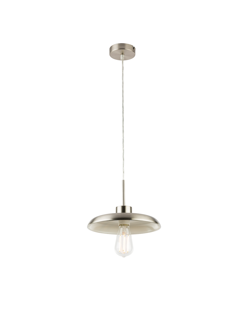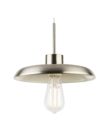 La lámpara colgante se caracteriza por su especial superficie vintage y su diseño reducido. Su diseño de la pantalla es simple con un soporte funcional, además ofrece a mayor emisión de luz posible, lo que también permite una visión de la fuente de luz. La pantalla de metal níquel mate tiene un diámetro de 25cm, cable graduable. Bombilla no incluida