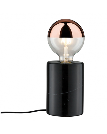 Lámpara fabricada de metal y mármol acabado negro y cobre mate de estilo industrial, el cable de la lámpara está recubierto de tela. Aporta un toque de distinción a la moda para tus lugares de favoritos de la casa.