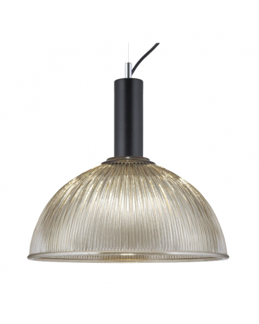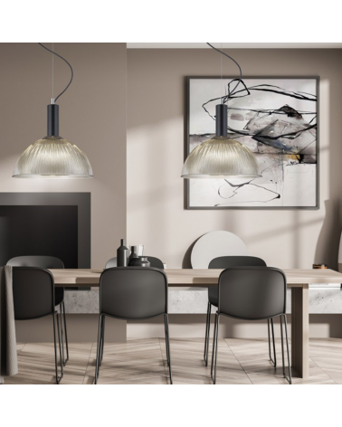 Lámpara de suspensión cúpula estilo vintage. Pantalla fabricada de metal y cristal disponible en acabado ámbar, gris o transparente. Ideal para la iluminación de mesas de cocinas, salones o restaurantes. Bombilla no incluída.