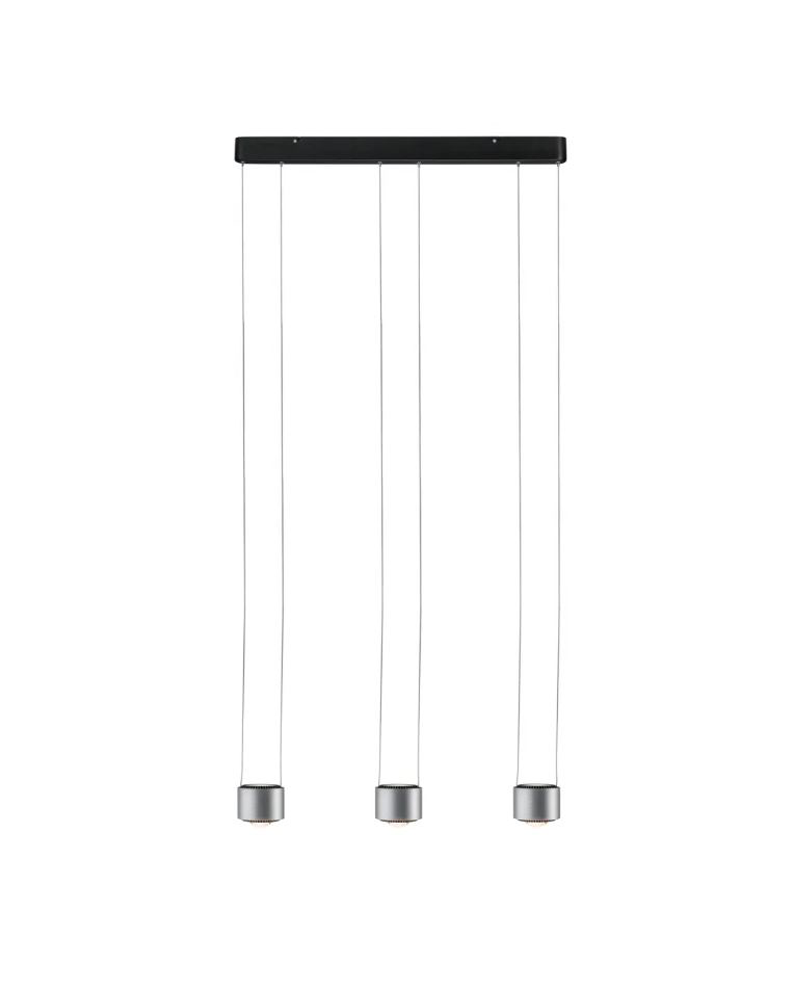 Elegante lámpara de techo LED con tres focos, estilo moderno fabricada de aluminio. Emite luz por la parte superior e inferior 5W y 4W. Regulable en altura. Disponibles luminarias colgantes , de mesa y de pie del mismo modelo, puede crear fácilmente acentos de iluminación en el salón. Larga vida útil de 30.000 horas.