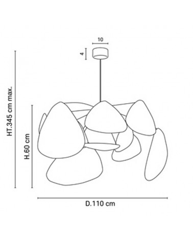 Con casquillo tipo E27, para bombillas con una potencia máxima de 60W, permite adaptar la intensidad lumínica según las necesidades y preferencias del usuario. Con un diámetro de 1,10 metros, esta lámpara de techo se convierte en un elemento central en cualquier espacio en el que se ubique. Bombilla no incluída.