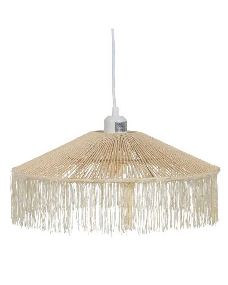 Dale a tu hogar un toque bohemio con esta hermosa lámpara de techo de estilo boho. Con un diseño artesanal y un acabado en crudo, esta lámpara de 41cm de diámetro es perfecta para quienes buscan un ambiente relajado y natural.