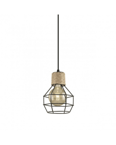 Lámpara de techo colgante 15cm pantalla estructura metal negro con portalámparas en cuerda E27